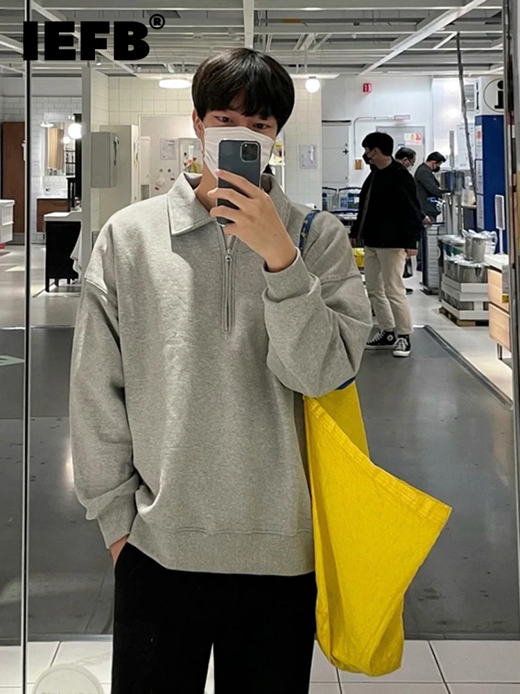 Iefb Preppy Style Lapel Men S Casual Sweatshirts 2022 New Simple Zipper Grey Fashion Pullover Tops Korean Chic Autumn 9a1176 Hoodies Sweatshirts Aliexpress